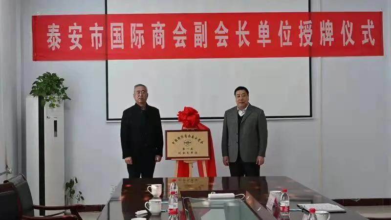 最后,在熱烈的掌聲中,泰安市貿(mào)促會(huì)會(huì)長(zhǎng)陳勇與集團(tuán)黨委書記、董事長(zhǎng)張繼生一起揭牌并合影留念。